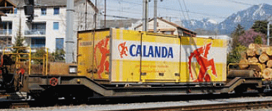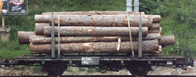 During the early 70s, the RhB used all available wagon types, including various two-axle flat wagons, for the removal of logs.