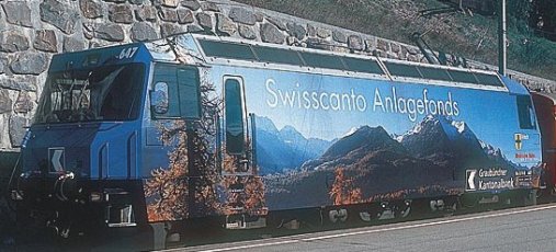 In 2005 several locomotives of class Ge4/4III 641 to 652 were re-painted and fitted with advertising decals. Thus after a long break No.647 "Grüsch" joins the Bemo product range again, now advertising "Bündner Kantonalbank".