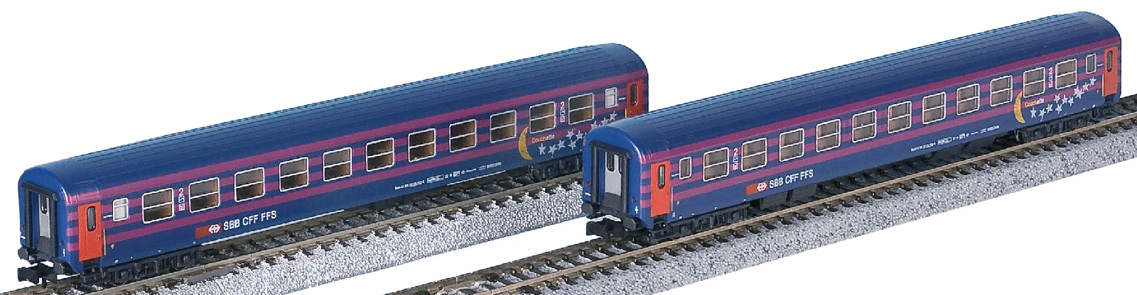 K23006 RIC Bcm Liege 2 Wagon Set - Moon and Stars, including indoor lighting
