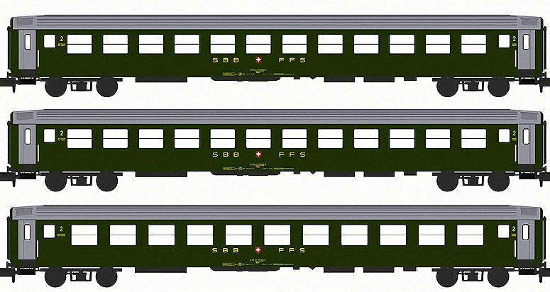 SBB 3x 2nd compartment Coach Set RIC Bm EpV-VI