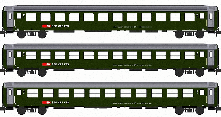 SBB 3x 2nd compartment Coach Set RIC Bm EpIV